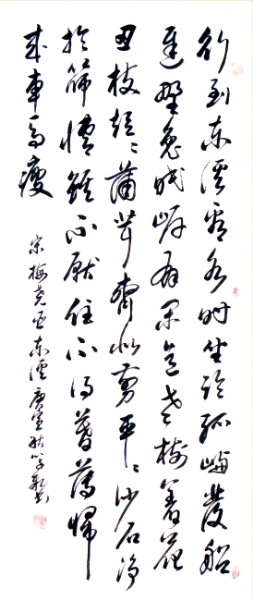 刘学新,字爱民,号一行、倚松老人。现为中国中央国家机关书画协会,中国审计书法家协会会员,山东省老年书画研究会会员,吴道子艺术馆研究员并理事,莱钢老年书画研究会常务理事。1965年曲阜师大中文系本科毕业。任高级教师30余年。受祖父言传身教,自幼酷爱书法艺术,数次临摹《圣教序》、《兰亭序》等多种书法碑帖。退休后从事12年老年大学书法教学。